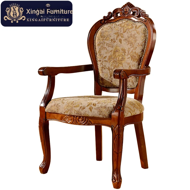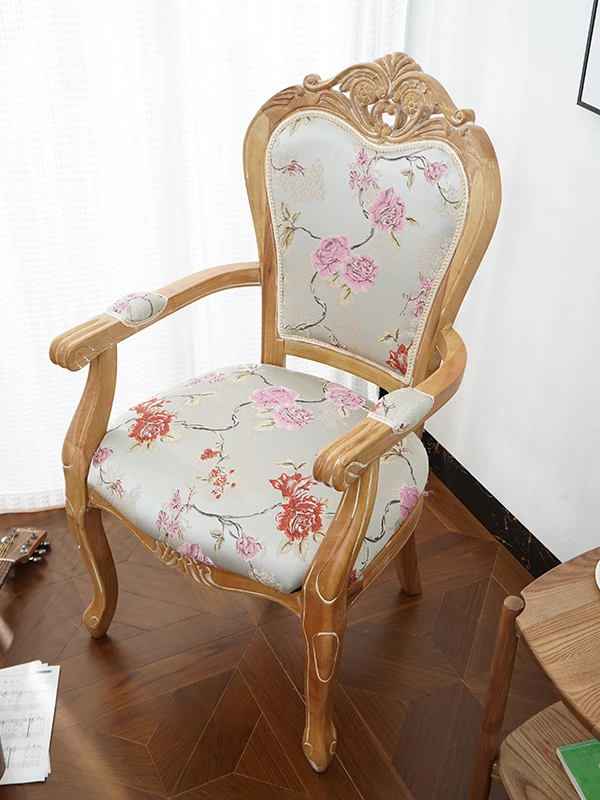 Elegant American-Style Solid Wood Dining Chair with Fabric Upholstery and Armrests - Perfect for Home, Hotels, and Dining Areas!