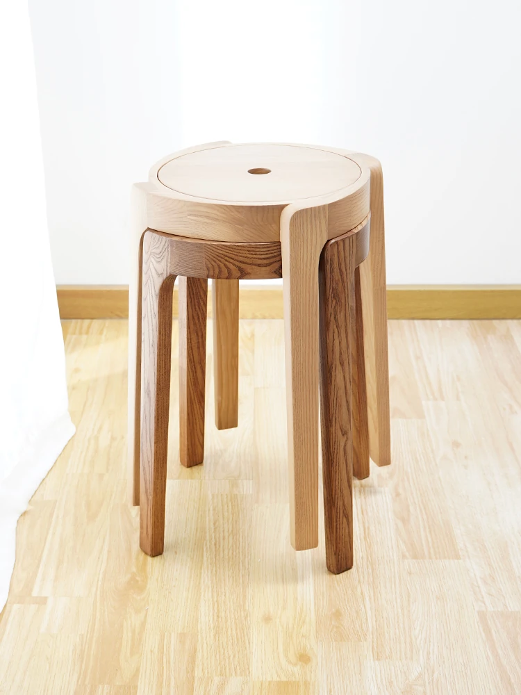 Xingai Solid Wood Stacking Stool - Scandinavian Ash Wood Round Stool for Living Room, Creative Sun Stool, Vintage Style Wheel Stool, Perfect for Home Use