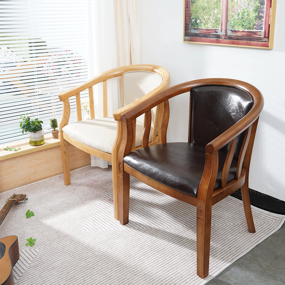 Elegant American Style Solid Wood Armchair - Premium Leather Accent Chair for Dining, Relaxation, and Mahjong Games - Perfect Blend of Comfort and Style!