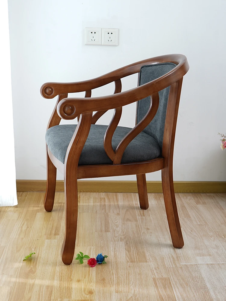 Rustic Solid Wood Dining Chair - American Country Style Armchair, Mahjong Chair, Leisure Chair, Single Sofa, Chinese Circle Chair, Upholstered Coffee Chair for Cozy Spaces. Perfect for Dining Rooms and Living Areas!