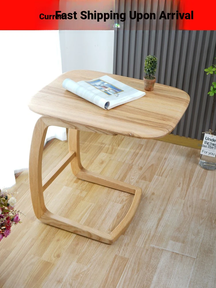 Nordic Minimalist Ash Wood C-Shaped Side Table - Solid Wood Sofa Corner Table, Movable Mini Coffee Table, Perfect for Bedside Use or Small Spaces