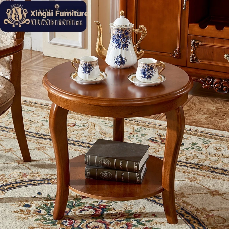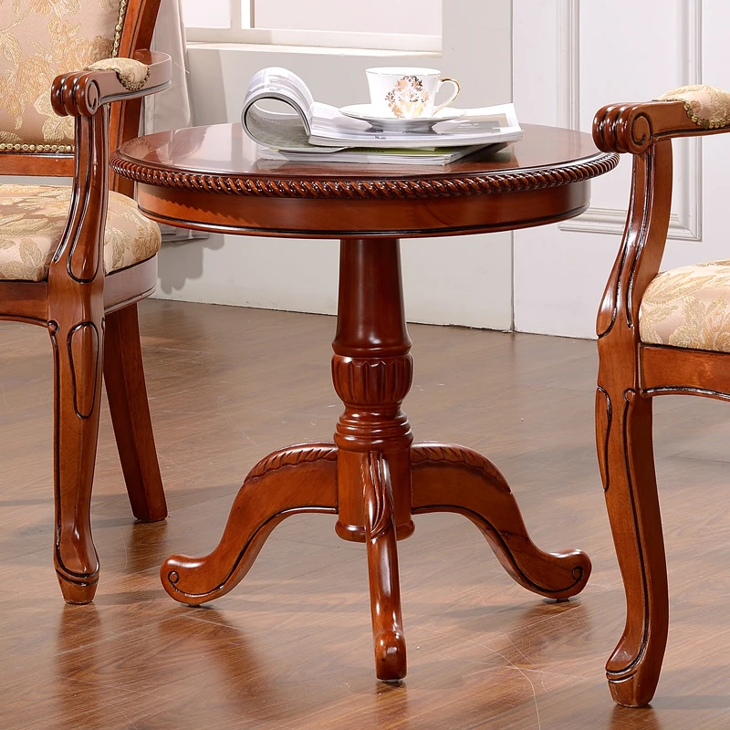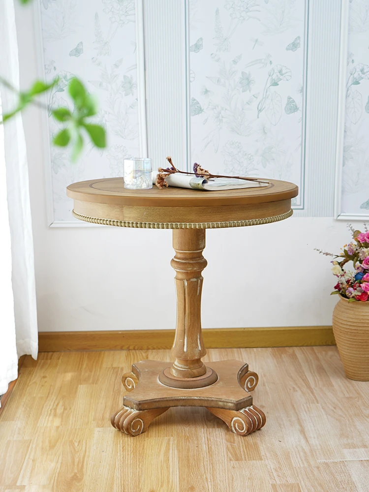 Vintage-Style Solid Wood European Coffee Table - Rustic American Country Side Table, Perfect for Cozy Living Spaces, Featuring a Charming Round Design Ideal for Tea and Phone Use.