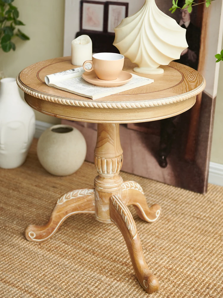 Vintage Round Solid Wood Coffee Table - Mini European Wedding Side Table, Rustic French Style for Cozy Living Spaces
