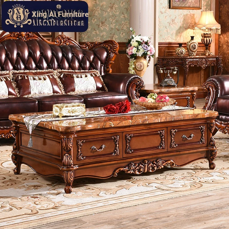 Elegant American-Style Solid Wood Coffee Table with Marble Top - 1.2m & 1.8m Options for Living Room, Perfect Match for Sofa Sets