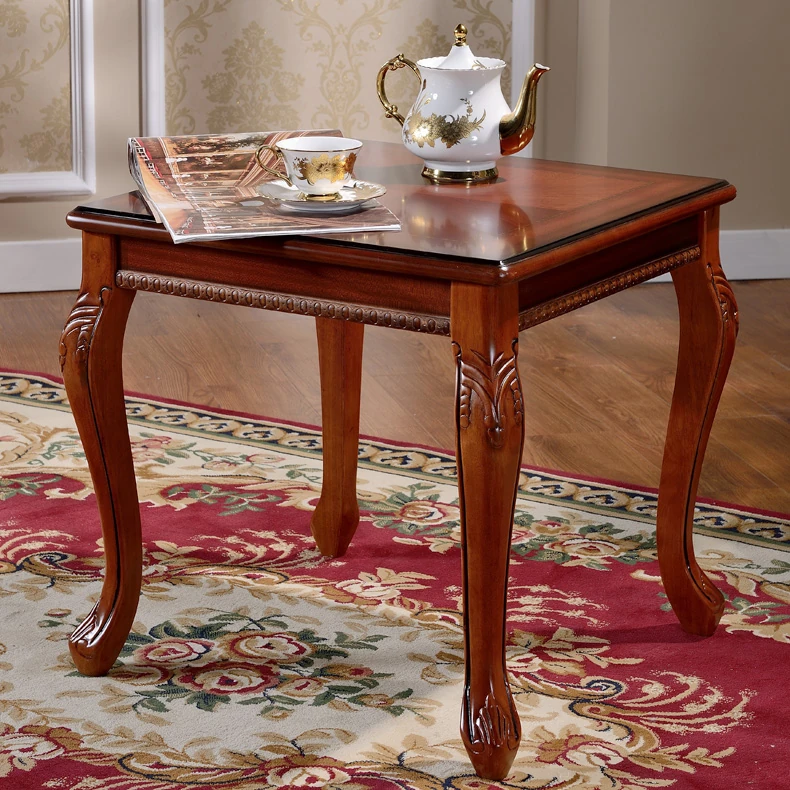 European Style 60cm Square Solid Wood Coffee Table - Vintage Finish with Intricate Carvings for Your Living Room - Elegant Small Square Table