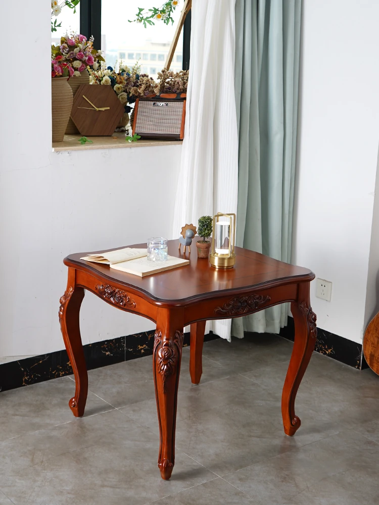 American Solid Wood Square Coffee Table - Vintage French Style - Versatile Square Dining Table for Kids - Perfect for Tea and Meals - Stylish and Durable Design