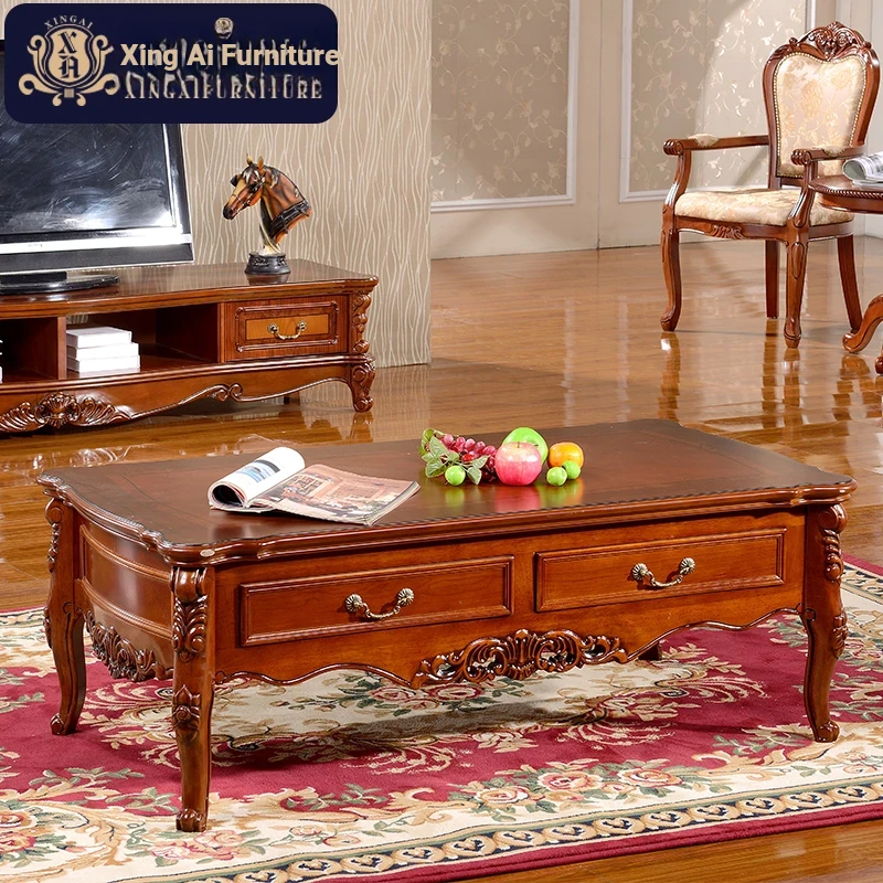 Elegant American-Style Solid Wood Coffee Table - 1.6m Long Living Room Center Table with Drawers, Perfectly Complements Your Sofa Set