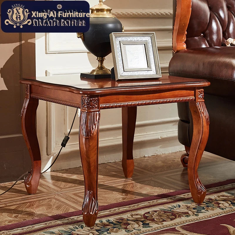 Elegant American-Style Solid Wood Square Side Table - 65cm Small Coffee Table for Living Room, Perfect for Sofas and Corners