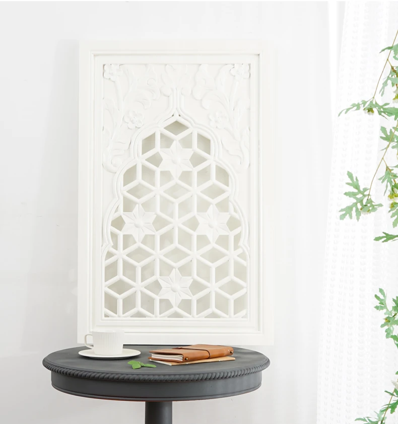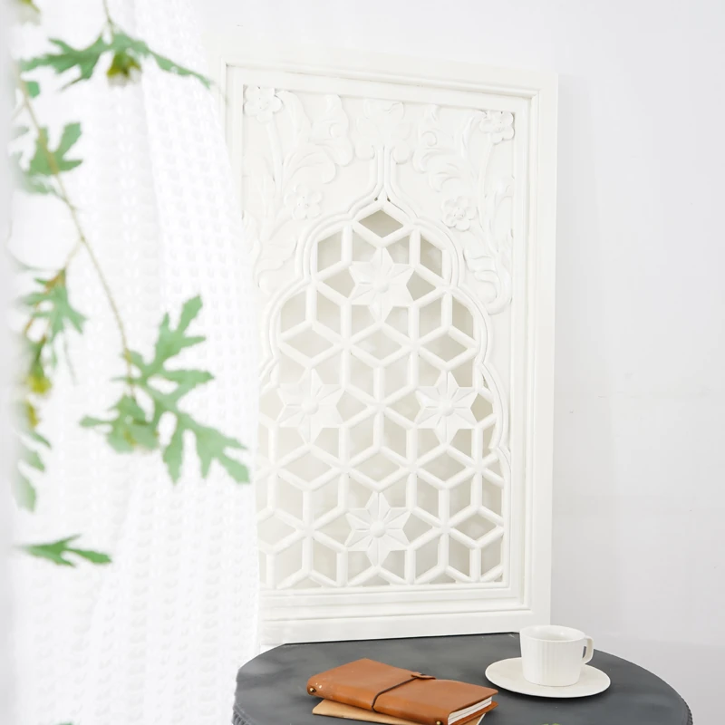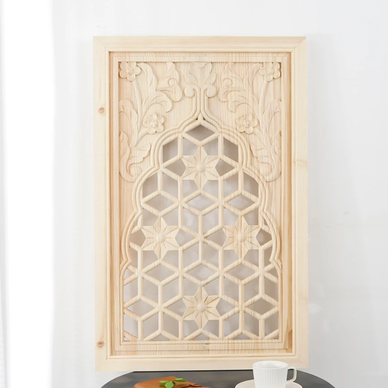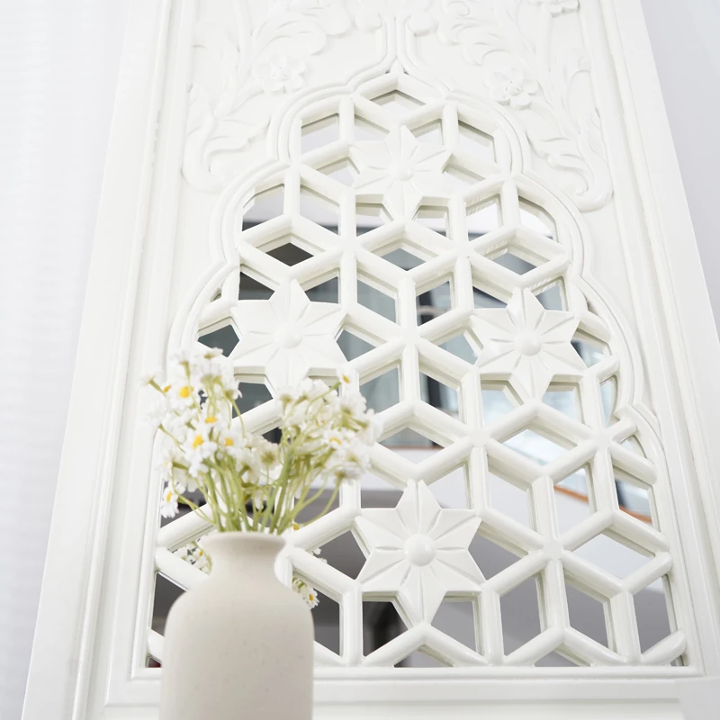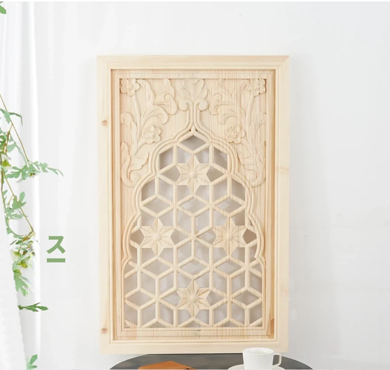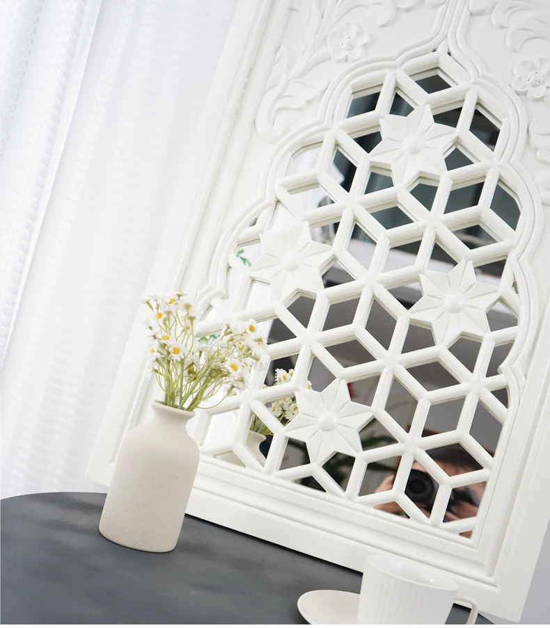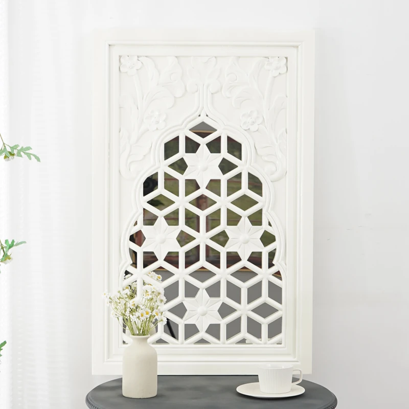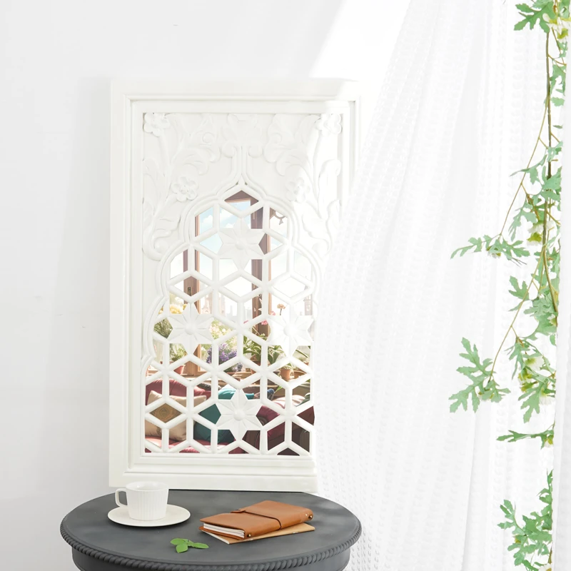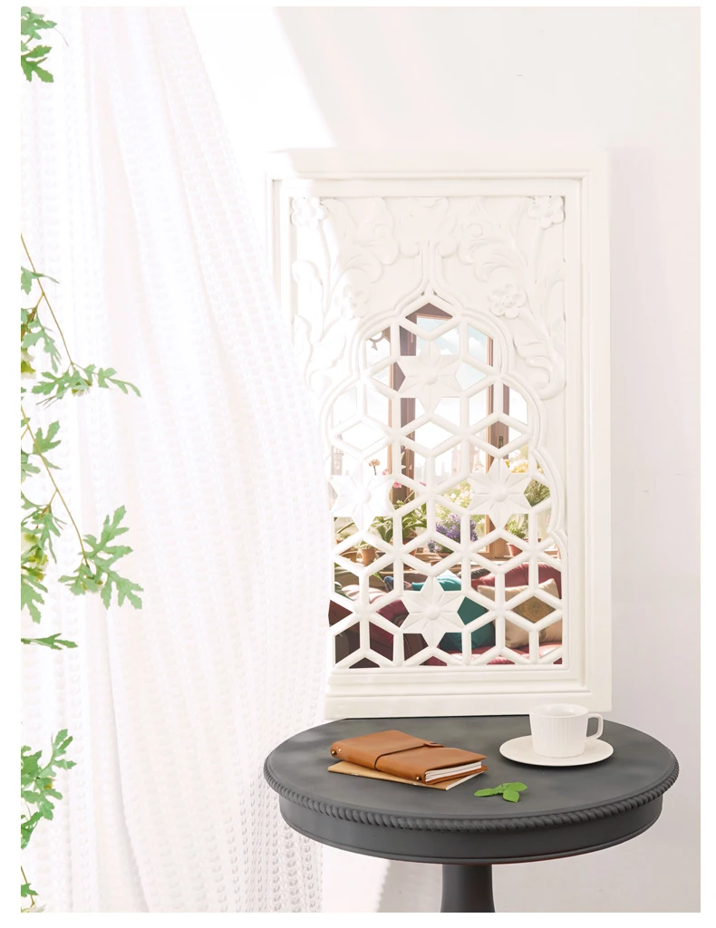 フランス風の無垢材フラワー窓壁鏡 - 美しい装飾ミラーでお部屋を華やかに!偽窓デザインの彫刻アートで、空間をエレガントに演出します。