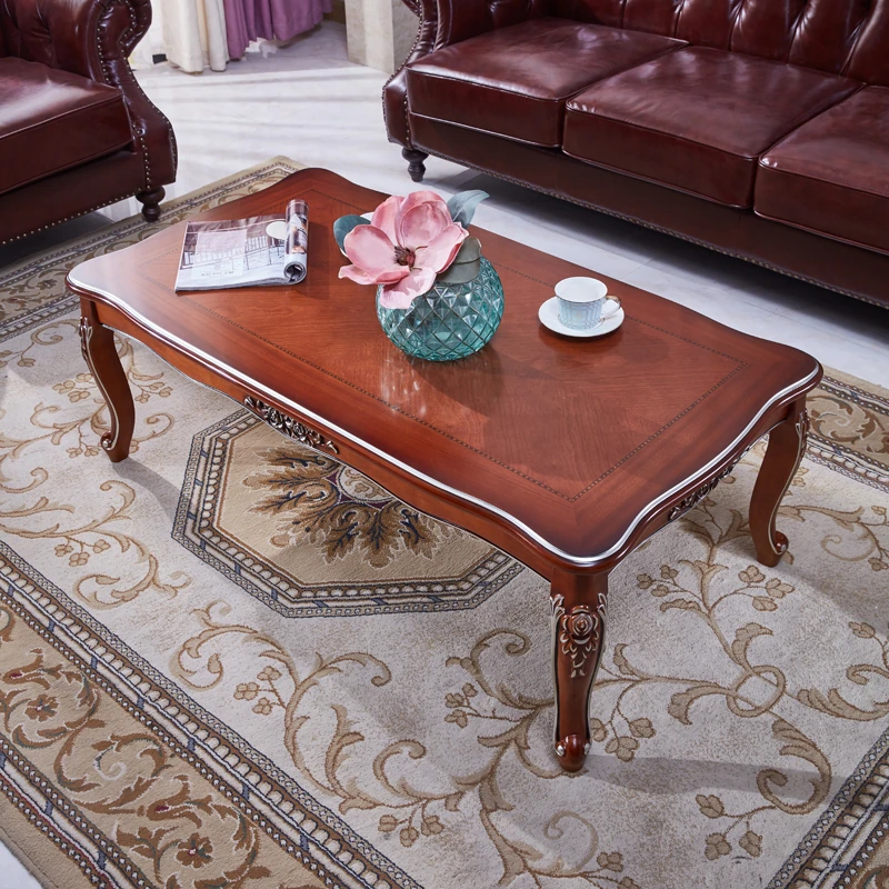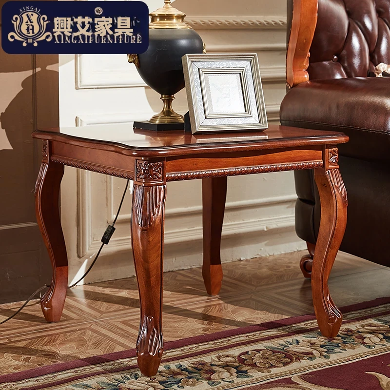 ヨーロピアンスタイルの60cm天然木製スクエアテーブル - アンティーク調の木彫り装飾が施されたリビングルーム用小型ティーテーブル。洗練されたデザインで、どんなインテリアにもぴったりです!