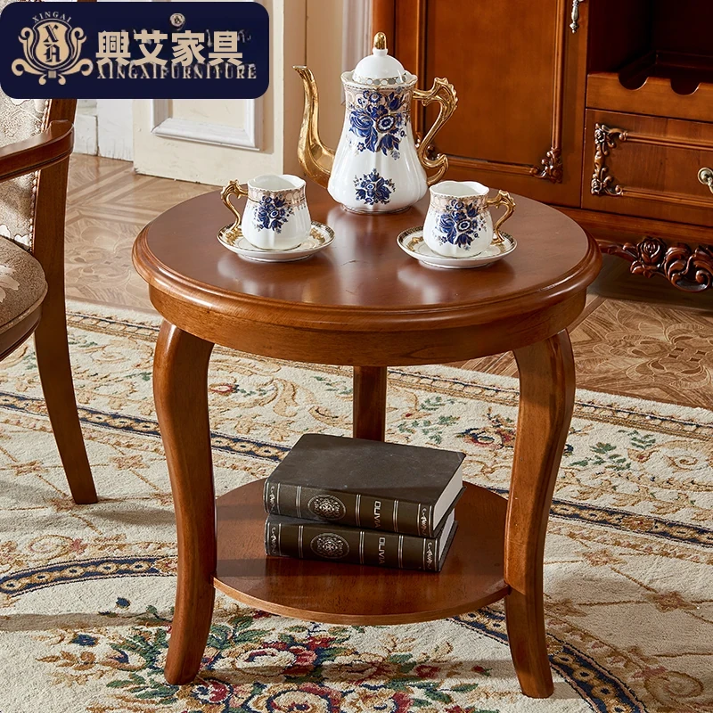 ヨーロピアンスタイルの無垢材コーヒーテーブル、アンティークカラーの美しい角テーブル。アメリカンカントリー風のリラックスできる小さな円形テーブル、電話用にもぴったりなデザイン!あなたのリビングにぴったりのアイテムです。