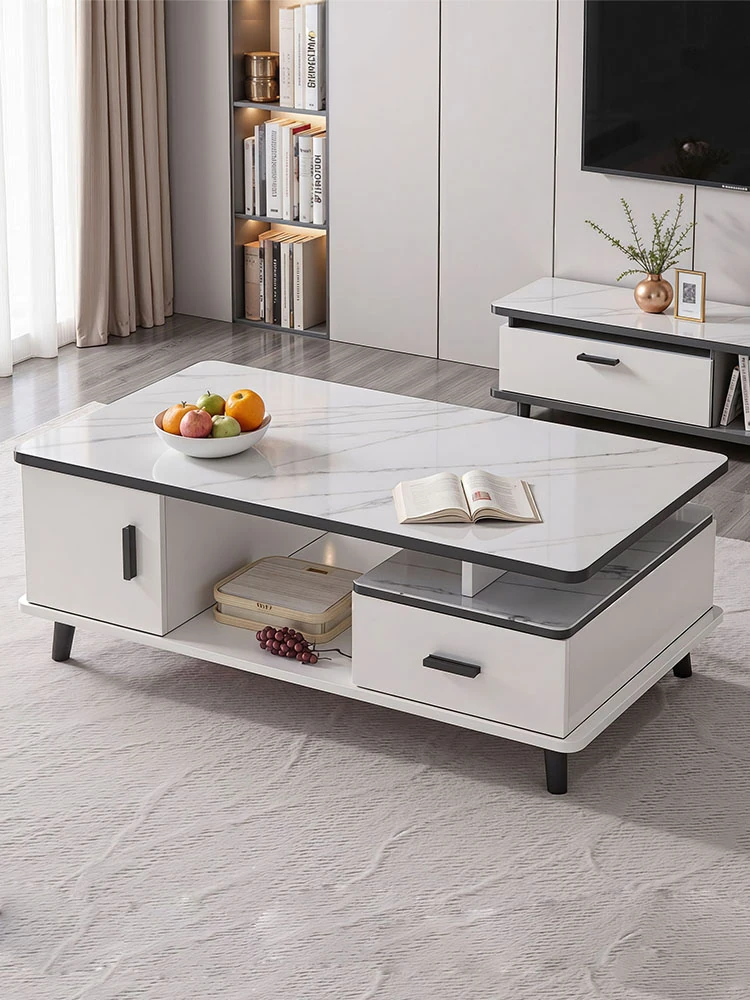 「顾家家居」シンプルクリーム風の万能小型リビングテーブル - 耐久性のある岩板製 PT7137で、あなたの空間にスタイリッシュなアクセントを!小さなお部屋でも大活躍!