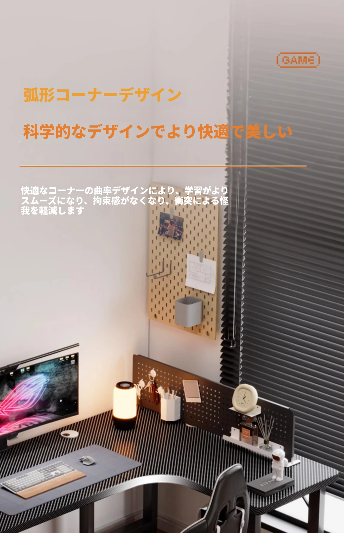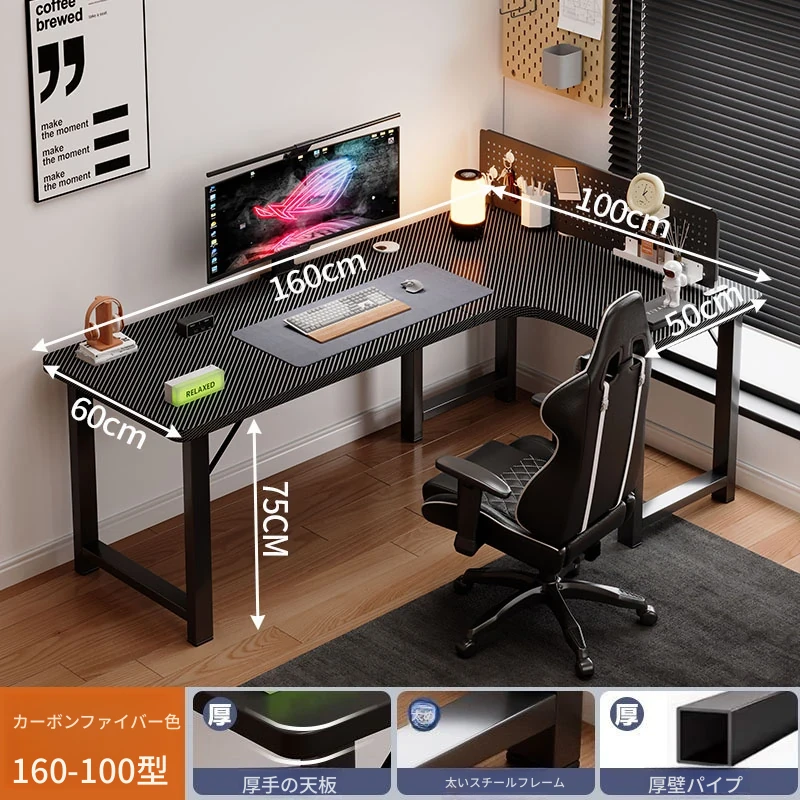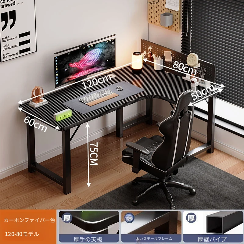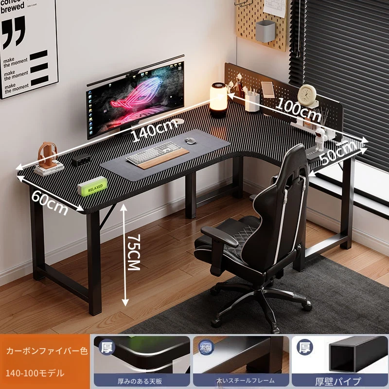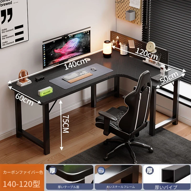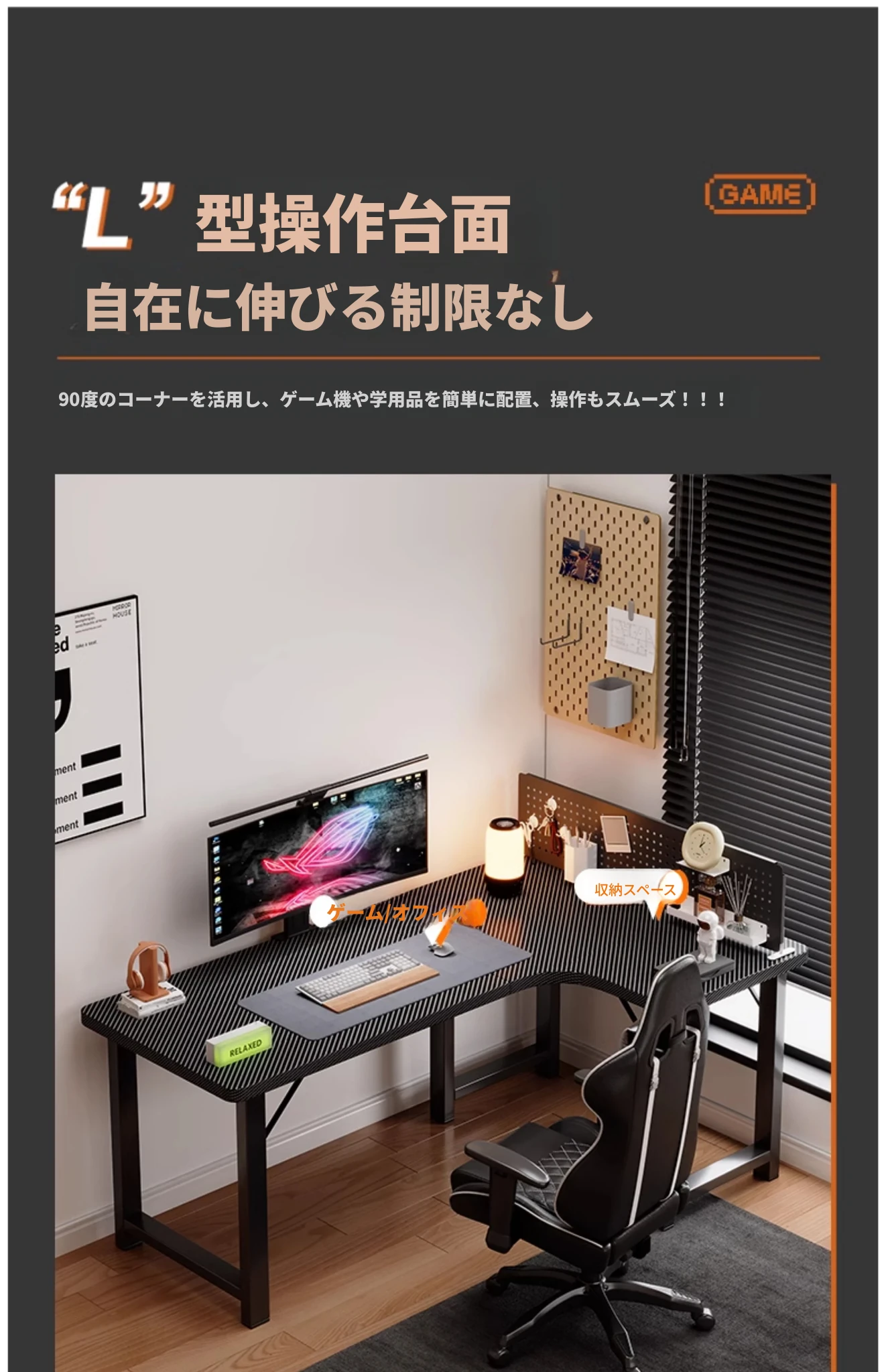 角度を活かしたL字型デスク - スタイリッシュなオフィス・ゲーム用デスク!学生や家庭用にも最適、スペースを有効活用しながら快適に作業や勉強ができます。