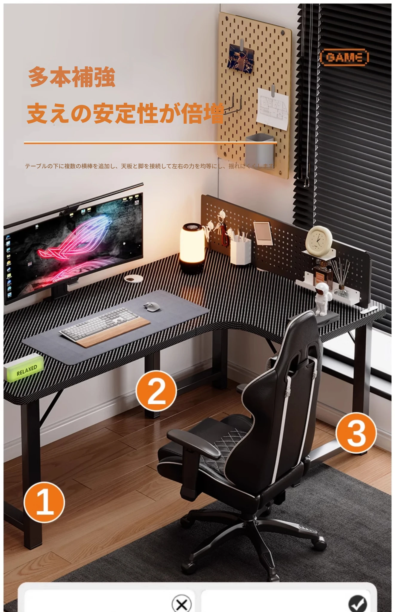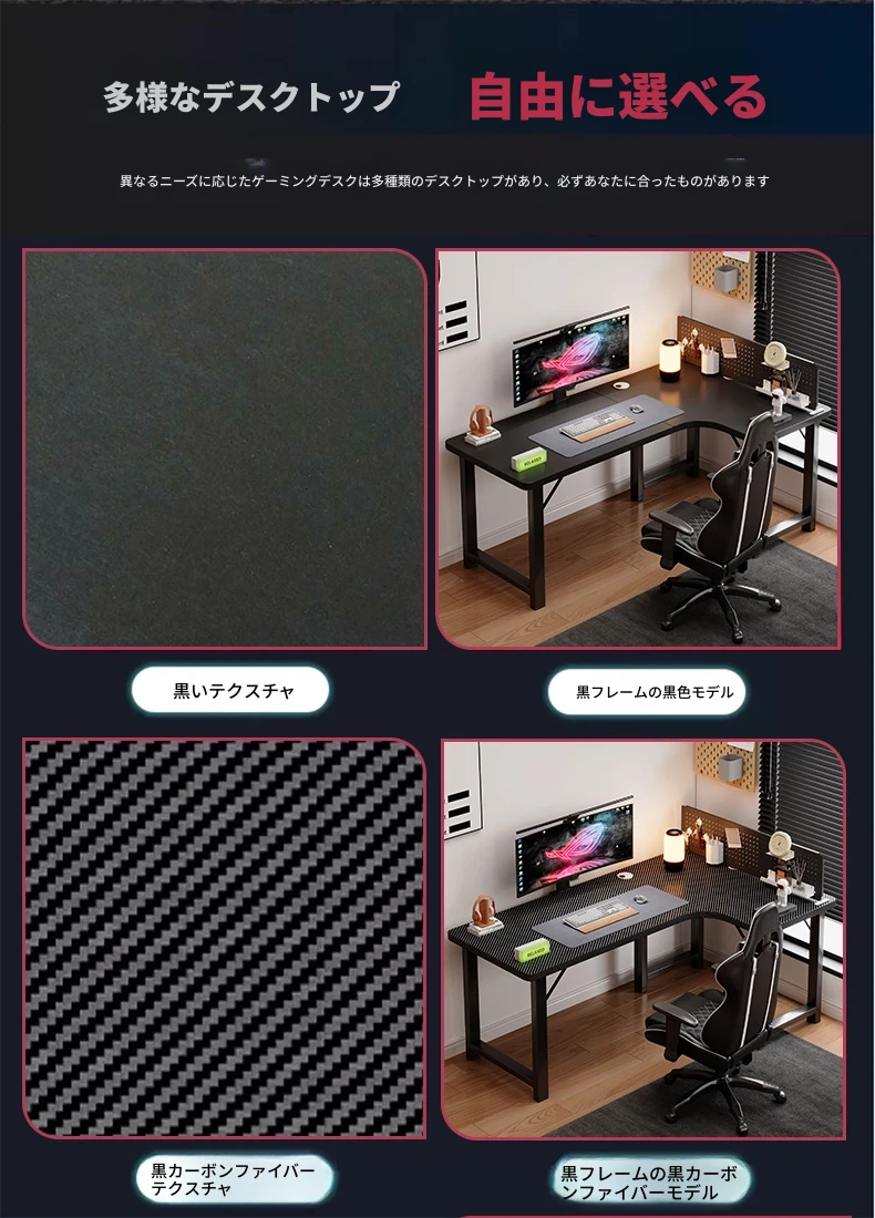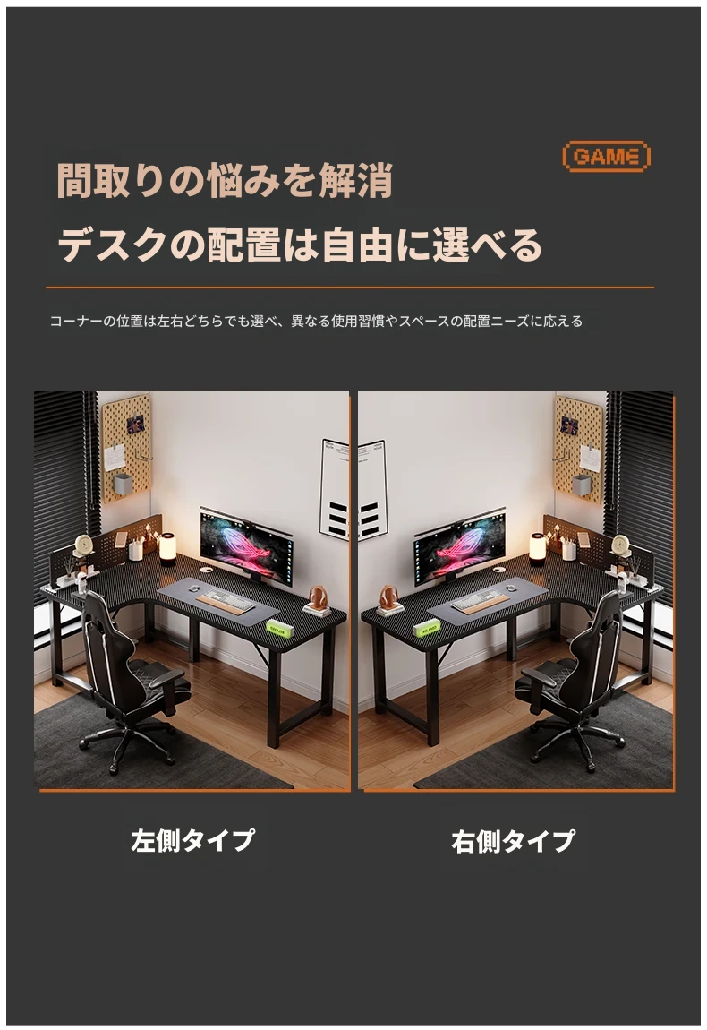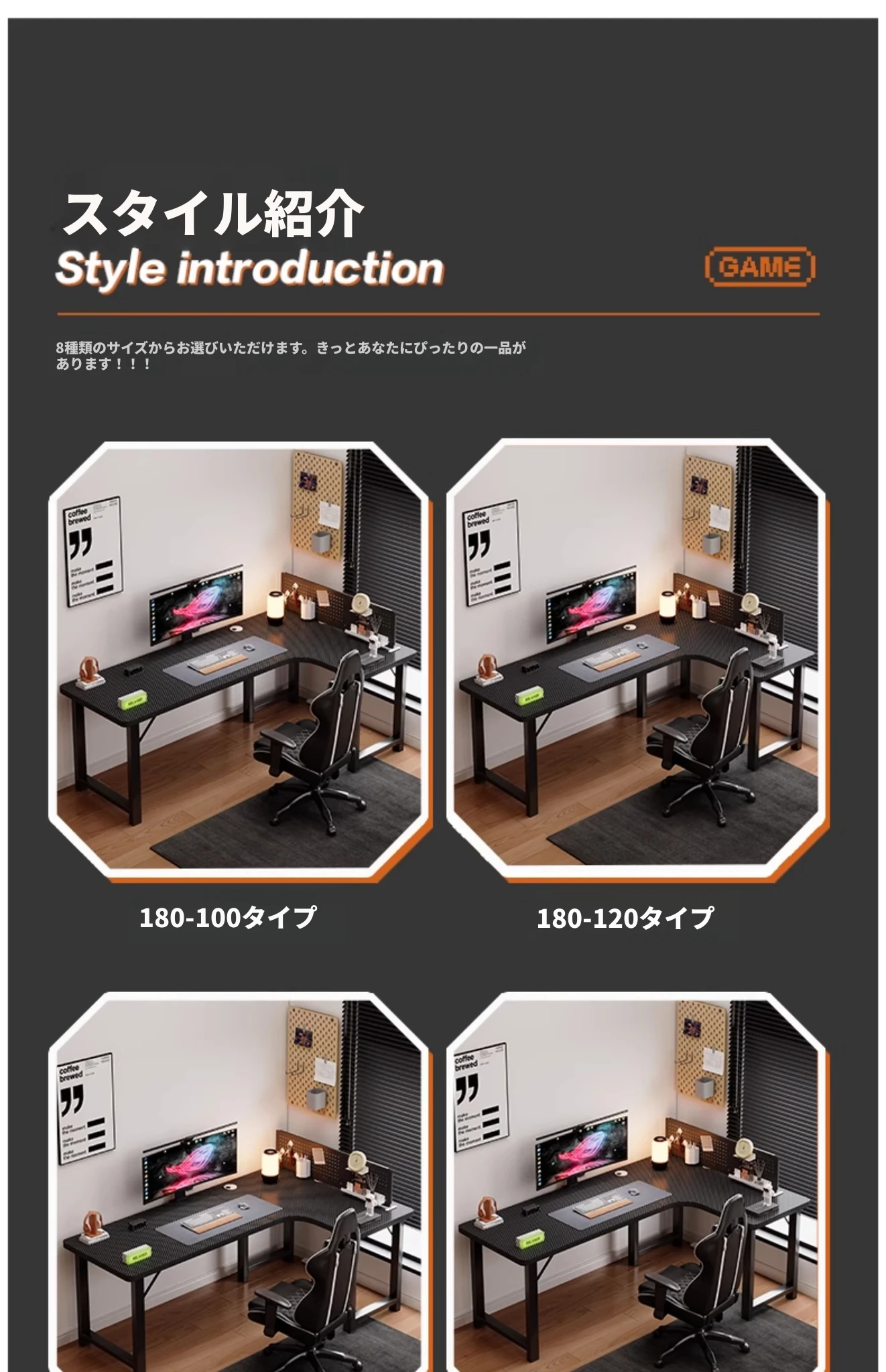 角度を活かしたL字型デスク - スタイリッシュなオフィス・ゲーム用デスク!学生や家庭用にも最適、スペースを有効活用しながら快適に作業や勉強ができます。