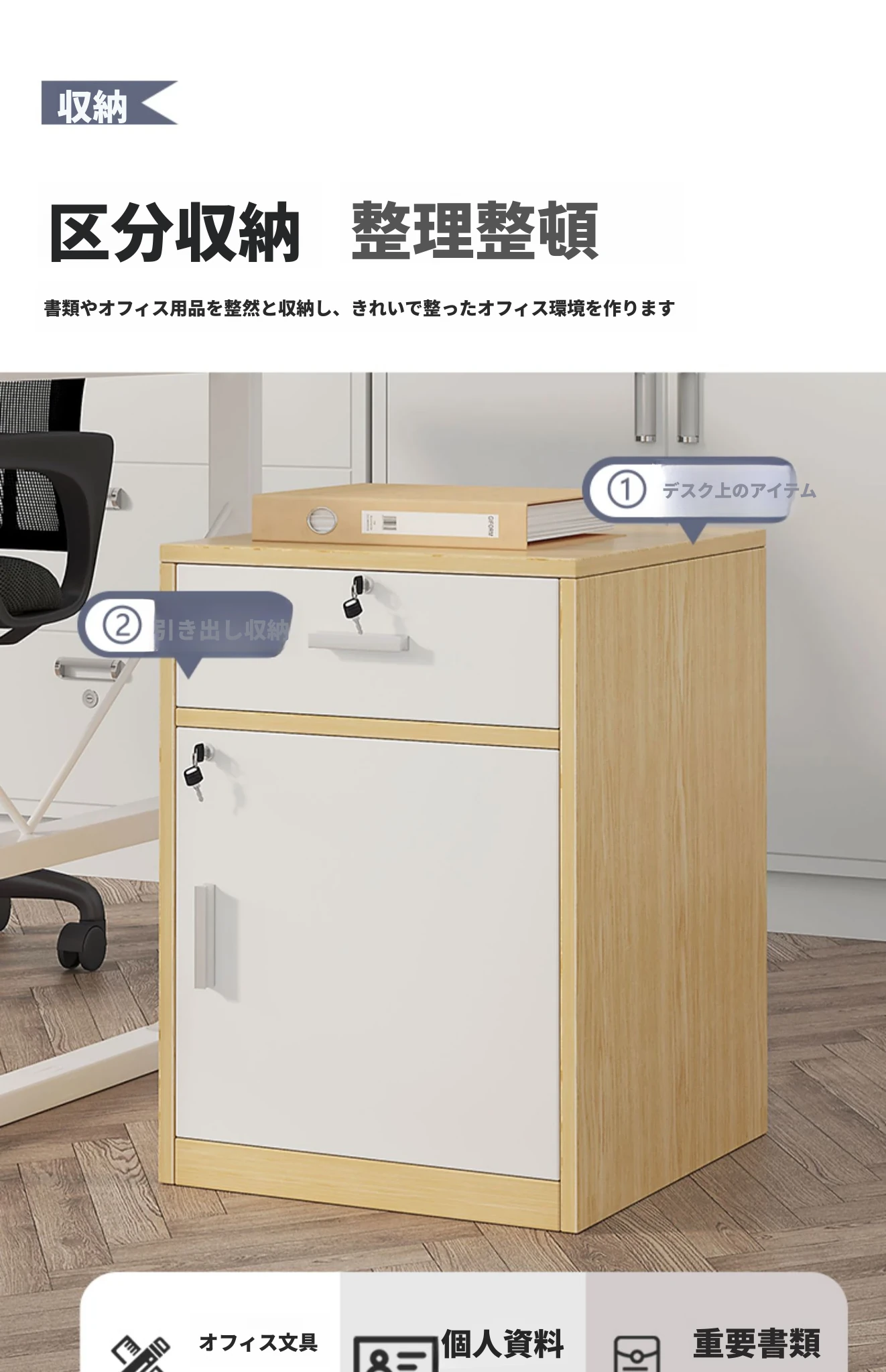 オフィス用ファイルキャビネット&デスク下収納ボックス - 家庭用引き出しキャビネット、低型収納、オフィスデスク横の便利なプリンターキャビネット!スッキリ整理整頓、作業効率アップ!