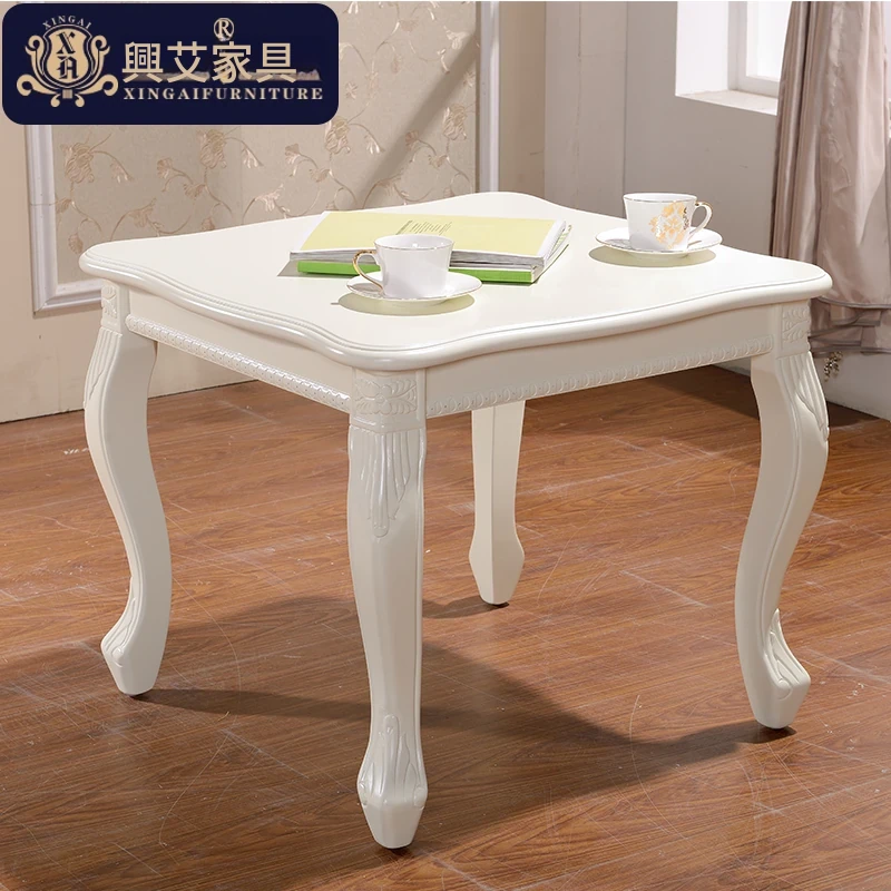 優雅なヨーロピアンスタイルのアイボリーホワイト木製サイドテーブル、70cmのコンパクトなサイズで、80cmのカフェテーブルとしても最適。洗練されたデザインでリビングや談話スペースにぴったり!